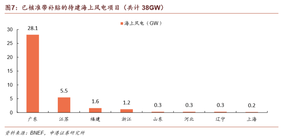 海上風(fēng)電補貼來源將會發(fā)生變化。自2022年起,中央財政將停止對新建海上風(fēng)電項目發(fā)放補貼,轉(zhuǎn)而鼓勵地方政府自行補貼,支持本地海上風(fēng)電項目的建設(shè)。目前海上風(fēng)電已核準(zhǔn)未建項目容量達(dá)38GW,主要集中在廣東。海上風(fēng)電政策的變動以及大量核準(zhǔn)項目,將使得海上風(fēng)電在2021年底前迎來一波搶裝熱潮。