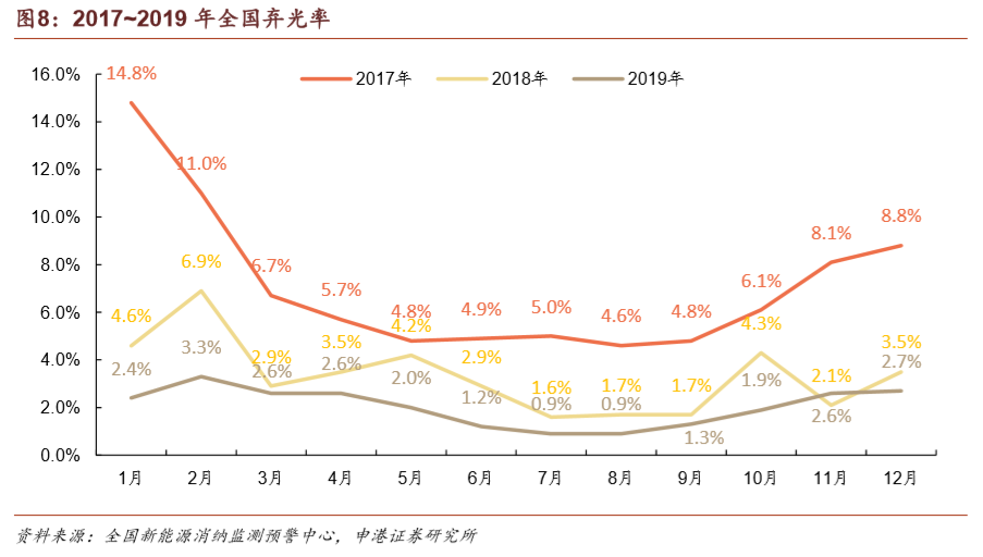 在新發(fā)布的風(fēng)電、光伏建設(shè)管理辦法中,都強調(diào)了消納的重要性,而根據(jù)此前的規(guī)劃,2020年棄風(fēng)率、棄光率達(dá)到5%以下是必須要完成的目標(biāo)。我們認(rèn)為未來影響行業(yè)裝機規(guī)模的因素中,電網(wǎng)消納將成為首要因素。