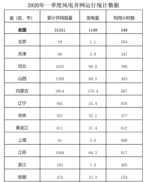 5月11日,國家能源局發(fā)布《2020年一季度風電并網(wǎng)運行情況》。